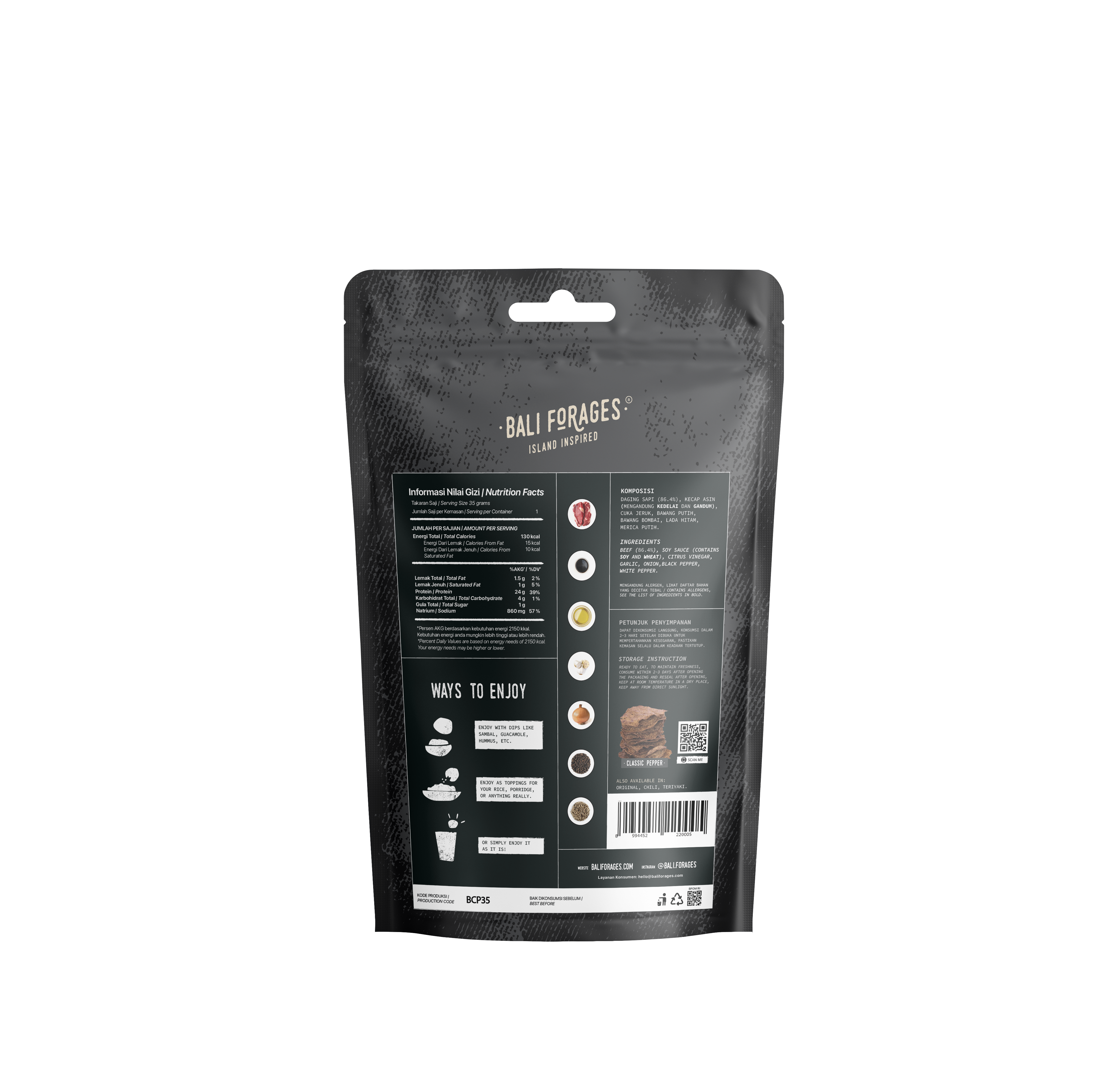 Imagine for a moment a potato chip and beef jerky having a love child and, voilà, beef chips were born! Thinly sliced, crispy, and crunchy. A perfect blend of black and white pepper with a bit of spice.